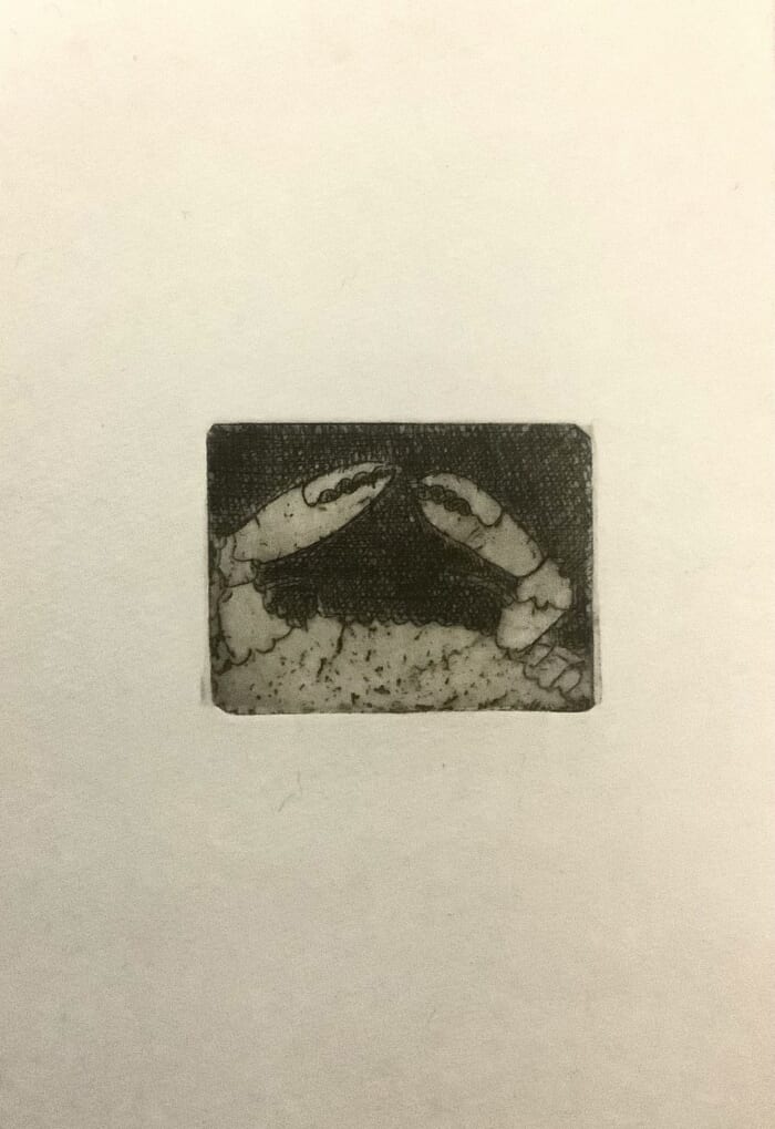 蟹のハサミを中心に配しました。こちらもシンコレの技法を用いた作品です。